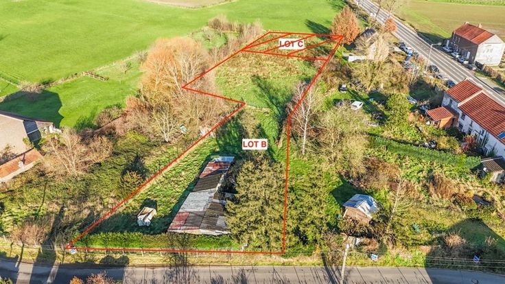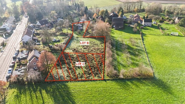 Terrain à bâtir pour villa 4 façades disposant d'une très belle largeur de façade à rue (+/- 29,00 m) pour une superficie de +/- 21 ares. Le terrain est légèrement surélevé par rapport à la voirie, permettant ainsi de profiter d'une très belle vue. Vue champêtre imprenable sur les alentours. Remarque : il y a une haie devant le terrain, il n'est pas visible directement depuis la voirie. Situé dans une rue calme à une seule voie. Ce bien est le LOT B (en teinte jaune sur le plan de géomètre) d'un ensemble de 2 lots. Arrêt de bus à quelques pas. Proche des axes autoroutiers (E40 et E411). Partie des frais de géomètre suite à division à charge de l'acquéreur. Le prix indiqué est sous réserve qu'un voisin confirme son intérêt pour le Lot C (partie verte)