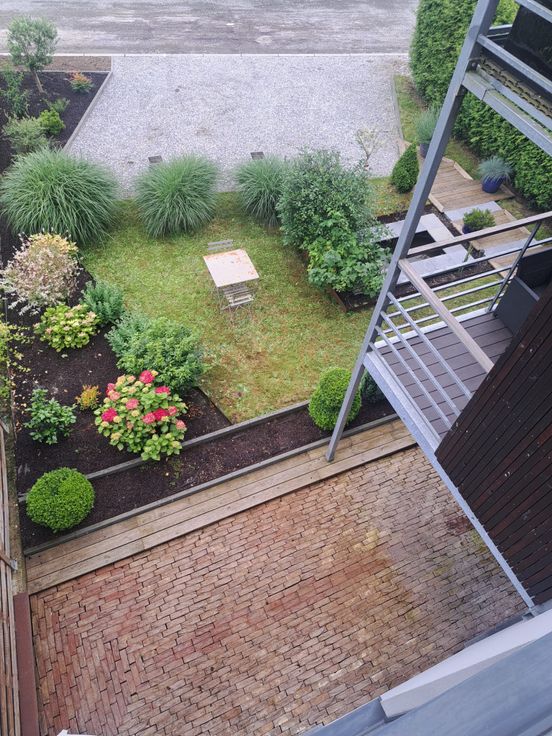 Le bâtiment comprend garage et emplacements de parkings privatifs, un jardin aménagé avec pièce d'eau, espace pour les conteneurs poubelles/vélos.