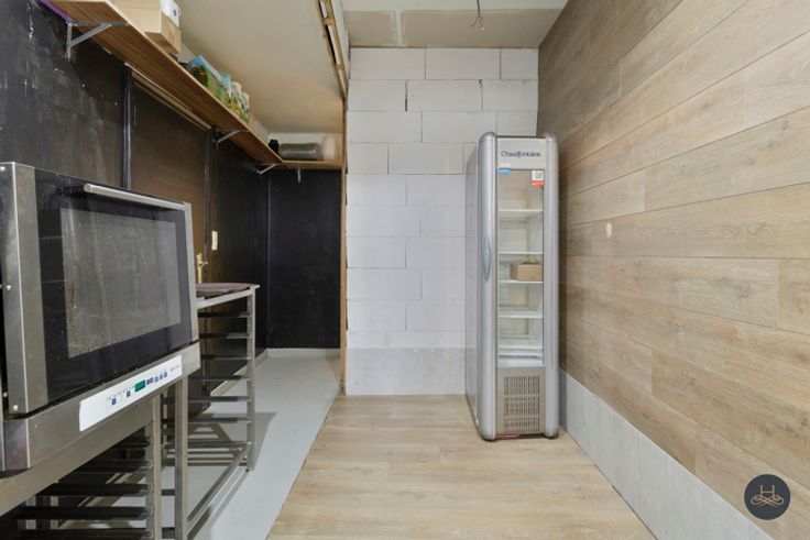 Het pand omvat een zeer grote ruimte vooraan het pand met toegang tot een kleinere berging. Daarnaast is er nog een zeer grote opslagplaats waar momenteel een koelcel staat. Deze opslagplaats is toegankelijk via een garagepoort van de straat. Dit biedt tal van mogelijkheden om goederen of dergelijke binnen te brengen.