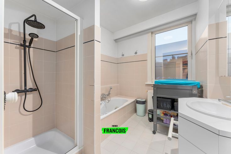 Het appartement is gelegen boven een handelszaak met een aparte inkomhal en bestaat uit: een lichtrijke leefruimte met een open geïnstalleerde keuken (frigo met diepvriesvak, oven, microgolf, kookplaat, dampkap), een berging met aansluiting voor de wasmachine + droogkast, een badkamer (ligbad, douche, wasmeubel) en een apart toilet.
