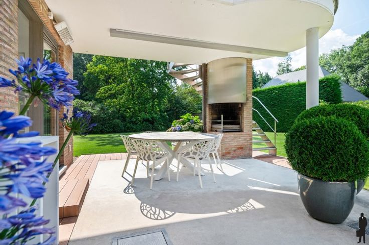 Een moderne villa op ca. 2.043 m² in de gegeerde wijk Vriesdonk, perfect voor luxueus wonen en professioneel werken. Gelijkvloers: - Inkomhal met vestiaire - Zonnige woonkamer op parket met gashaard en grote raampartijen - Stijlvolle eetkamer met schuifraam naar het terras - Designkeuken met kook- en eeteiland, Miele-inbouwtoestellen - Bureau op parket met ingemaakte kasten en plafondhoge ramen - Dubbele inpandige garage met spoelbak en toegang tot tuin en wijnkelder Praktijkruimte of kangoeroewonen: - Aparte ingang, wachtzaal met toilet, berging en twee bureaus - Kan eenvoudig worden omgevormd tot extra leefruimte of gastenverblijf Eerste verdieping: - Nachthal met ingemaakte kasten - Twee slaapkamers, waarvan één met balkon - Badkamer met ligbad, toilet en lavabo - Hoofdslaapkamer met dressing, TV-kast, terras met trap naar de tuin en ensuite badkamer Tuin: - Prachtig aangelegd (2014) met volledige privacy - Meerdere terrassen, jacuzzi, overdekte berging en twee tuinhuizen Meer info: www.deboerenpartners.be