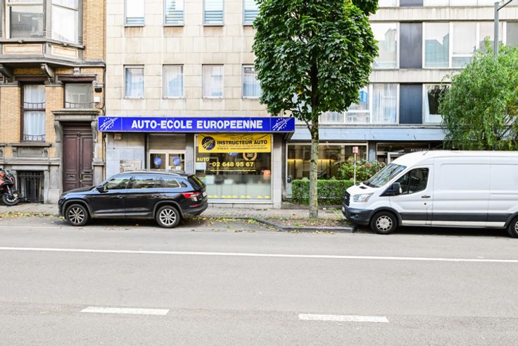 Op de prestigieuze Avenue de la Couronne, een van de belangrijkste verkeersaders van Brussel, ontdekt u onze prachtige commerciële gelijkvloerse ruimte met een mooie vitrine en meer dan 169 m² die naar wens kan worden ingericht, drie parkeerplaatsen en twee parkeerboxen in een beveiligde kelder. Momenteel in gebruik als rijschool, bestaat het pand uit het volgende: een mooie vitrine van ± 10 m lang, een inkomhal, een ontvangstruimte, een receptie voor klanten en een bureau aan de achterkant, evenals een tweede afzonderlijk bureau aan de vitrinekant. Een grote zaal van 35 m², ingericht als klaslokaal (vroeger gebruikt als kluisruimte), een bureau van 10 m², een vergaderruimte met kitchenette en een apart toilet. In te richten naar wens (vroeger ingericht door een bank, het pand beschikt nog steeds over een kluisruimte en hoge beveiliging). Drie parkeerplaatsen beschikbaar tegen 25.000 € per stuk en twee parkeerboxen beschikbaar tegen 35.000 € per stuk. Zeker een bezoek waard!