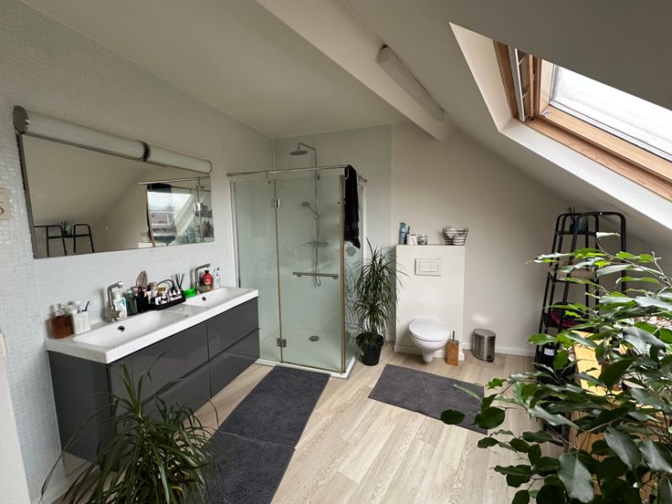 Eigenlijk is dit een volledig huis, want beneden krijg je er ook nog een grote garage bij (10 meter diep en een stadstuin met een mooie lindeboom en een prachtige magnolia. Een buitenkansje !