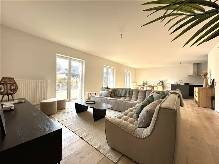 Sorry er is geen nederlandse vertaling beschikbaar. L’immobilière Trust a le plaisir de vous proposer ce magnifique appartement rez-de-chaussée de 152,98 m² de superficie totale, dans le nouveau projet à Chaumont-Gistoux la « Corniche d’or ». Implanté dans un cadre verdoyant vous profiterez d'une superbe architecture ainsi que des matériaux de qualité, du calme, de la luminosité et de la sécurité des lieux. Situé à 7 minutes à pied du centre de Chaumont-Gistoux et 15 minutes en voiture de Wavre. Il offre un hall d’entrée qui donne accès à un spacieux living avec porte-fenêtre vers un agréable jardin privatif de 110 m² orienté sud-ouest, une cuisine ouverte super équipée, une belle chambre avec sa propre salle de douche (douche et lavabo), une buanderie, un WC séparé et un hall de nuit qui dessert une seconde chambre ainsi qu'une salle de bain (douche, baignoire, WC et double lavabo) et un dressing. L'appartement béneficie de 2 jardins: avant et arrière. Châssis DV PVC et compteurs individuels (eau, électricité, gaz). Le prix de vente comprend une cave de 15,03 m². Prix hors participation à l’acte de base et aux frais de raccordement. Les frais de raccordement s’élèvent 4.500 HTVA. Partie construction sous 21% de TVA et partie terrain sous les droits d'enregistrement, soit 12,5%. Photos non contractuelles. Pour plus d’informations ou pour toute question, n’hésitez pas à contacter l’agence au 010/68.01.81 ou Nicolas Godard au 0487/20.09.58.