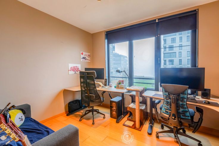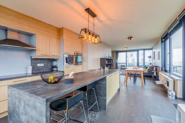 Het appartement bevindt zich op de tweede verdieping en beschikt over twee terrassen: eén terras met zicht naar de Schelde en een tweede terras aan de zijkant van het gebouw, ideaal om op elk moment van de dag van de zon te genieten. De open woonkamer baadt in natuurlijk licht dankzij de vele ramen en voelt zeer ruim aan. De keuken is uitgerust met moderne toestellen en biedt een gezellig kookeiland waar je zowel kunt koken als genieten van een aperitief. Verder beschikt het appartement over 2 slaapkamers, berging, gastentoilet en een badkamer met dubbele lavabo en een bad voorzien van een douchescherm. Parkeren is eenvoudig dankzij de bijhorende autostaanplaats op niveau -1.