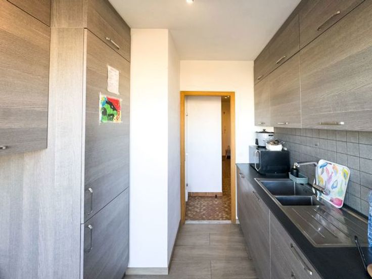In een aangename omgeving, dichtbij alle voorzieningen, ontdek dit prachtige appartement met 2 slaapkamers en zijn twee terrassen. Op de 7e verdieping van een gebouw van 8 verdiepingen geniet u van een lichte woonkamer die toegang geeft tot het eerste terras (ZW). De volledig uitgeruste keuken is smaakvol gerenoveerd. Deze beschikt over een koelkast, oven, afzuigkap, kookplaat en een vaatwasser. De gang die alle ruimtes bedient, is voorzien van ingebouwde kasten (garderobe, bergkast, schoenenkleedkamer). Beide slaapkamers hebben toegang tot verschillende terrassen. Ook de betegelde badkamer is uitgebreid gerenoveerd en voorzien van wasaansluiting. Alle chassis zijn recent en efficiënt. Conforme elektriciteit, gepantserde deur en privékelder. Parkeerplaats inbegrepen in de prijs. EPC C-29