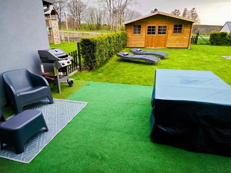 Jardin clôturé et abri de jardin avec électricité