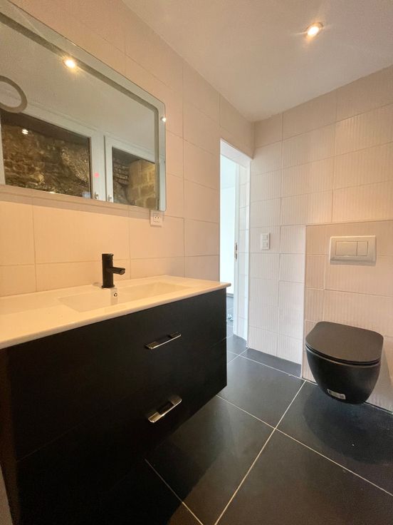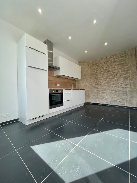 A LOUER. Laissez vous séduire par cette habitation aux finitions de standing. Au RDC : Cuisine Eggo neuve entièrement équipée (four, frigo, taque, lave vaisselle) : 20m² - Buanderie : 6m² Au 1ER étage : salon salle à manger très lumineux : 27,5m² - Salle de douche à flan de rocher : 5m² Au 2EM étage : 1 chambre parentale : 15m² - 1 Chambre ou bureau : 9m² - Terrasse en rooftop : 9m² Toiture : Neuve - Châssis : Double et triple vitrage en PVC. - Electricité : Bi-horaire - CONFORME- Revenu cadastral : 267€ PEB : E Idéalement situé, ce bien est à proximité des commodités, écoles ainsi que des bus et de la gare ! Ce bien vient d'être entièrement rénové (cuisine, électricité, sanitaires, chauffage, toiture,...)