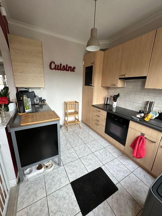 - Cuisine entièrement équipée (hotte, four, frigo, lave-vaisselle) ouverte sur la salle à manger, créant une atmosphère conviviale