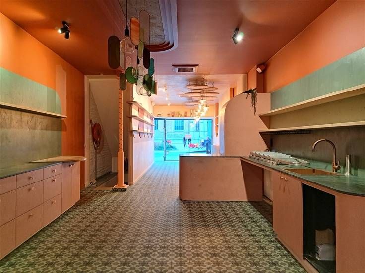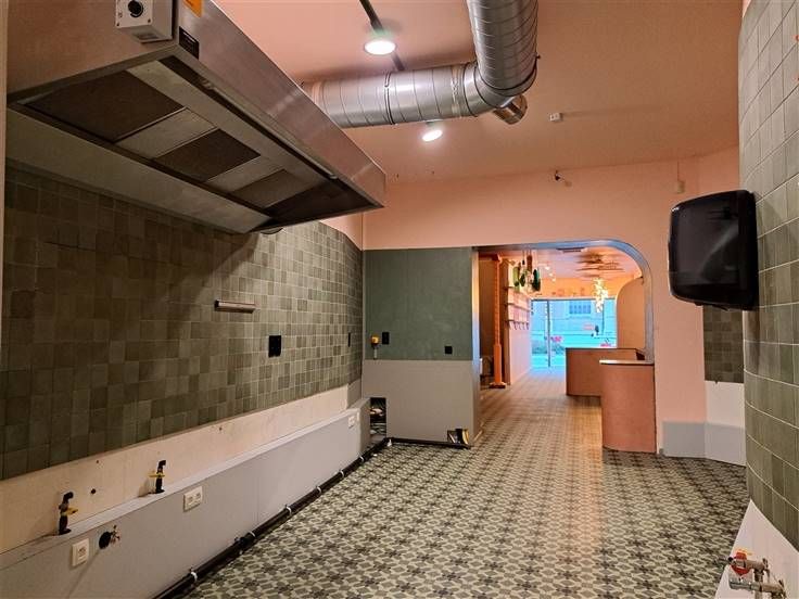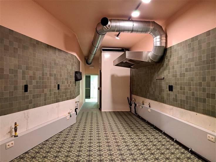 Aansluitend aan de verbruikszaal is er een open keuken, voorzien van een dampkap en een koelcel.