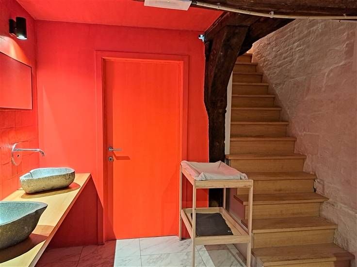 In het keldergedeelte werden de toiletten voorzien (2aparte toiletten) en een dubbele lavabo.