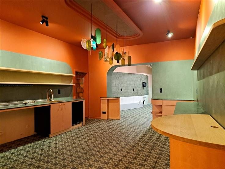 Er zijn 2 open ruimtes die momenteel dienst doen als verbruikszaal.