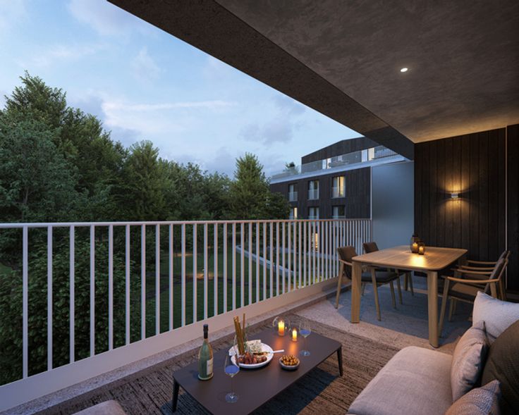 De terrassen en tuinen zijn optimaal georiënteerd, zodat je volop kan genieten van het groene decor van de omliggende bomen en struiken. Het project beschikt over een ondergrondse parking, een fietsenstalling met bergingen en een extra bovengrondse fietsenstalling voor extra gemak.