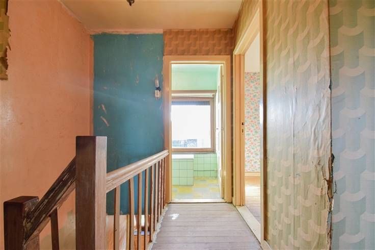 Deze te renoveren woning beschikt over een bewoonbare oppervlakte van 135m² en is gelegen op een perceel van 7a 58ca nabij winkels, scholen, het openbaar vervoer, grootwarenhuizen en belangrijke verbindingswegen. De indeling is als volgt: op het gelijkvloers bevindt zich een inkomhal (2,2 x 4,5m), een toilet (1 x 1,1m), een woonkamer (26,7m²), een keuken (3 x 2,4m) en een berging-wasplaats (2,2 x 2,4m) met toegang tot de oprit. Op de eerste verdieping leidt de nachthal (2,4 x 2,6m) naar 2 volwaardige slaapkamers (3,7 x 3,9m; 4 x 2,7m), een kinderkamer / bureau / dressing (2,8 x 2,4m) en een badkamer (1,7 x 2,1m) uitgerust met een enkele wastafel en een ligbad. Verder is er een zolder (6,3 x 6,3m) dewelke ingericht kan worden mits het plaatsen van een vaste trap en een kelder (1,5 x 3m). Bovendien is er een omheinde tuin met groene vergezichten, een tuinberging (2,9 x 3m), een achterpoortje dat uitgeeft op een wandelroute en is er parkeermogelijkheid voor 2 wagens op de oprit en in de garagebox (3,2 x 6,1m). Renovatieplicht is van toepassing | verwarming via gaskachel | grondwaterput. Wenst u deze eigendom te bezichtigen? Maak gerust een afspraak. 015 711 000 - info@clavisvastgoed.be