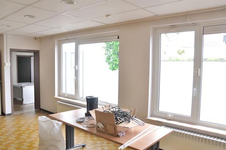 Netto beschikbare oppervlakte ± 110m² + 15m² koer, bestaande uit een gemeenschappelijke hal, een kantoorruimte met receptie, twee burelen, een groot bureel of vergaderruimte, een bureel of archiefruimte, een keuken, een toilet en een koer. Tevens inclusief een garage. Individuele CV aardgas.