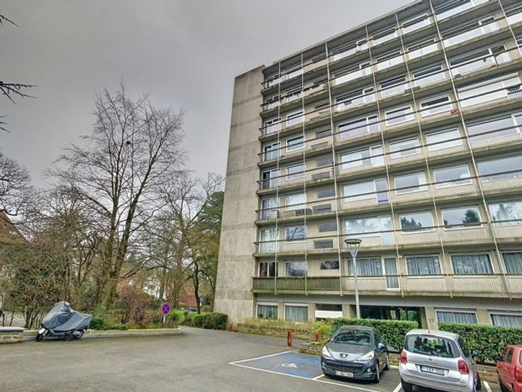 VAN BECELAERE - In een rustige en groene omgeving, op de 6de verdieping van een gebouw met lift, mooi appartement bestaande uit een woonkamer van +/-30m2 met volledig ingerichte open keuken en toegang tot een ruim zuidgericht terras met mooi uitzicht, berging, apart toilet, 1 slaapkamer van +/-14m2 met kast en doucheruimte (douche, wastafelmeubel en wasmachine), kelder, verlichting en gordijnen - Maandelijkse provisie voor algemene lasten (inclusief verwarming en water): 185€ - Parking voor bezoekers - EEN AANRADER!
