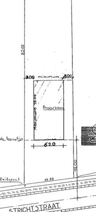 Grond niveau: vlak. De bouwlijn ligt op 15m van de wegas. Bouwdiepte bedraagt 15m op straatniveau en verdieping onder dak. De bouwhoogte is maximum 3,5m vanaf maaiveld tot kroonlijst. De dakhelling max. 45° met kamers in het dak. Een bijgebouw naast het hoofdgebouw is mogelijk voor een garage (max. 30m²) en kan op 25m van de bouwlijn worden opgericht. Zijdelingse bouwvrije stroken van 3m aan linker- en rechterzijde. Vele mogelijkheden om een ruime woning te bouwen (reeds plannen beschikbaar van een te realiseren woning op de bouwgrond). De inrichting van de nutsvoorzieningen zijn te voorzien voor de koper (riolering, elektriciteit, kabeldistributie, …).