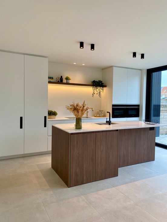 We betreden de woning via de ruime inkomhal met ingemaakte vestiairekast en toegang naar apart toilet. Via de stalen glazen deur komen we in de ruime leefruimte. Aansluitend aan de leefruimte bevindt zich de luxueuze keuken. De keuken is volledig uitgerust met toestellen van Siemens (oven, microgolf, ruime koelkast, inductie kookplaat met dampkap en vaatwasser). Vanuit de keuken hebben we via een groot schuifraam toegang tot het volledig nieuw terras en ruime tuin met enkele prachtige bomen. Er is naast de keuken tevens een berging voorzien met toegang tot ruime kelder. De volledige gelijkvloers is voorzien van vloerverwarming.