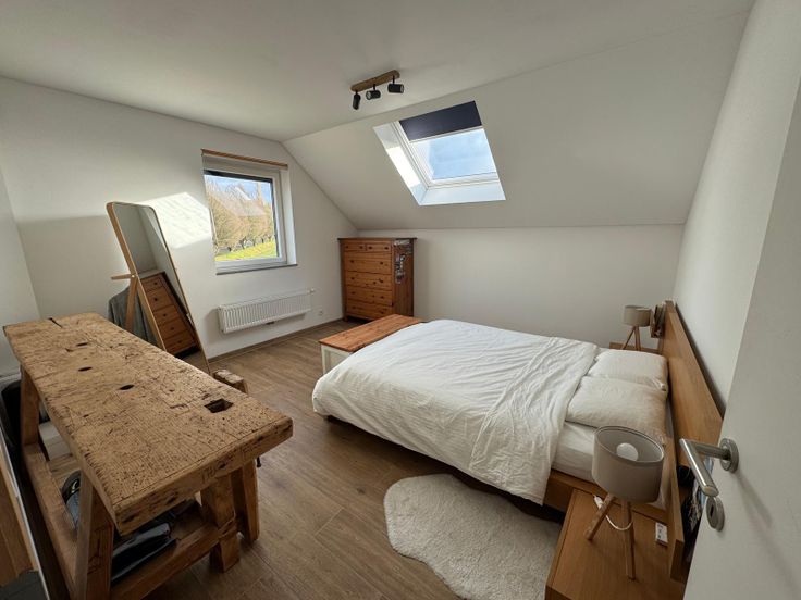 Détendez vous dans les chambres idéalement situées de part et d'autre de l'appartement. La chambre principale est équipée de stores Velux intérieurs et volets roulants motorisés pour vous offrir une obscurité totale.