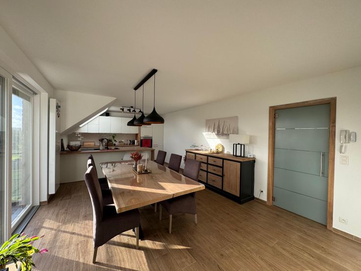 Profitez d'un salon, salle à manger et cuisine équipée, baignés de lumière grâce à deux baies vitrées et un Velux orientés plein sud et tous 3 équipés de screens pour plus de confort en été.
