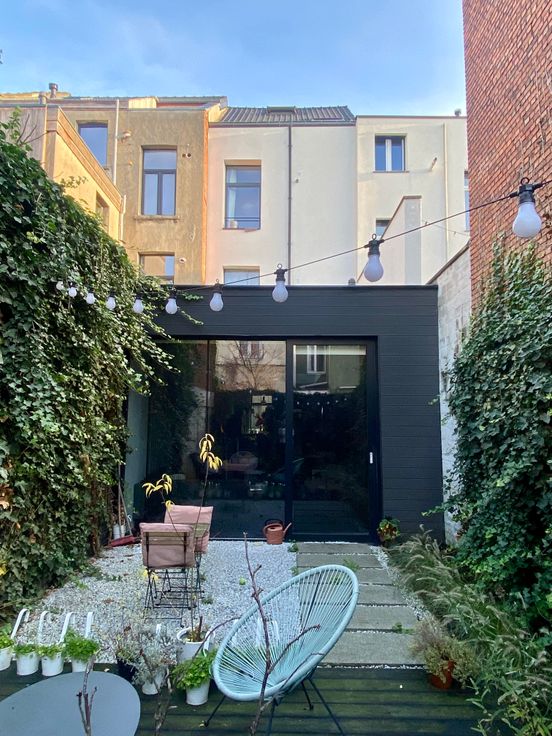 Een zuid-west georiënteerde privé tuin. Het appartement bestaat uit één grote open ruimte, waardoor er een loft-gevoel ontstaat. Volledig vernieuwd, geïsoleerd en brandveilig gemaakt in 2011, afgewerkt met bijzondere en kwaliteitsvolle materialen.
