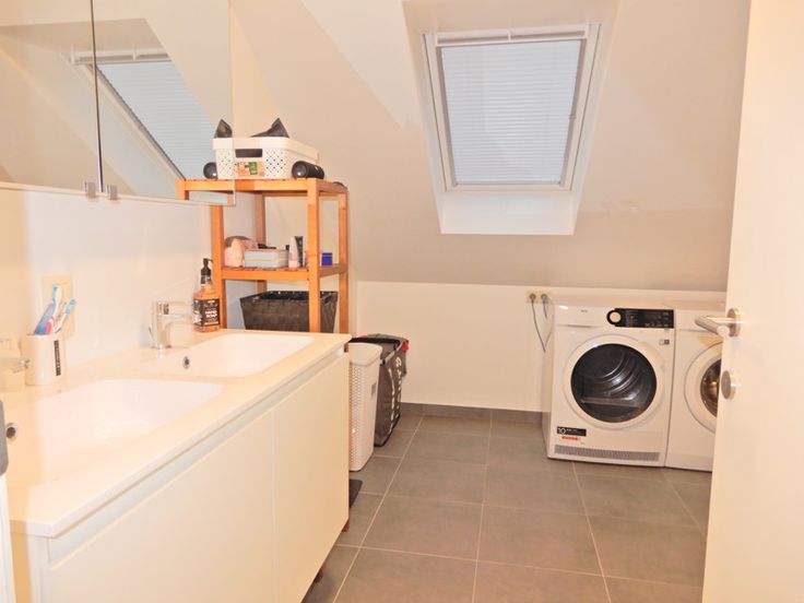 Tweede verdieping: 3 slaapkamers (15m², 12m², 11m², vloerverwarming) - ingerichte badkamer (7m², toilet, douche, dubbele lavabo en kasten).