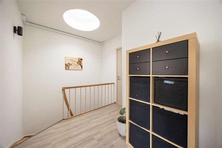 Bel-etage gelegen op het einde van een doodlopende straat met 3 slaapkamers. Gelijkvloers : Inkomhal met gastentoilet en vestiairekast, inpandige garage, wasplaats, CV ruimte en extra berging. 1ste Verdieping : Zeer lichte woonkamer / eetkamer, aanpalende ingerichte keuken en overdekt terras met trap naar de tuin. 2de Verdieping : 3 mooie slaapkamers waarvan de hoofdslaapkamer met dressing, volledig gerenoveerde badkamer met regendouche, bad, toilet en dubbele wastafel. Diverse : airco in de slaapkamers, nieuw dak, elektra, en verwarming. Deze charmante woning, die deels gerenoveerd werd, biedt alles wat u nodig heeft en is meteen bewoonbaar. Gelegen op het einde van een doodlopende straat, geniet u hier van de rust en privacy, terwijl u toch op korte afstand van het bruisende centrum van Wijnegem woont. Bovendien bevindt het prachtige park van Wijnegem zich op wandelafstand de perfecte plek om te ontspannen en van de natuur te genieten. Een ideale kans voor wie op zoek is naar een woning die het beste van beide werelden combineert: rust en nabijheid van voorzieningen.