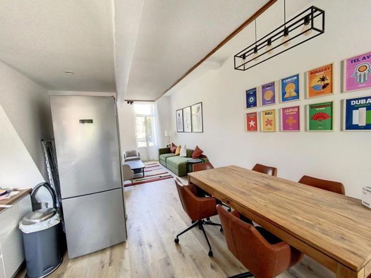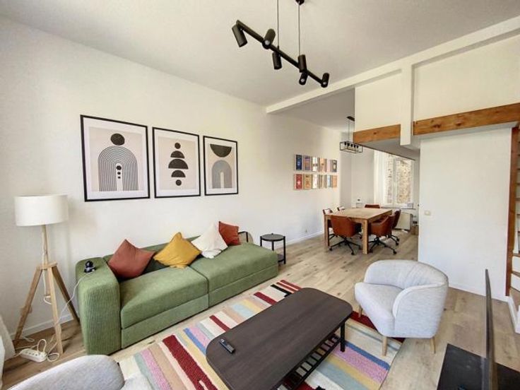 Het hoogwaardige appartement, momenteel verhuurd, beslaat drie verdiepingen en biedt een moderne en lichte woonomgeving.