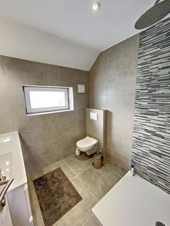 Tussenverdieping: Aparte WC. Wasruimte en condensatieketel (geïnstalleerd in 2022).