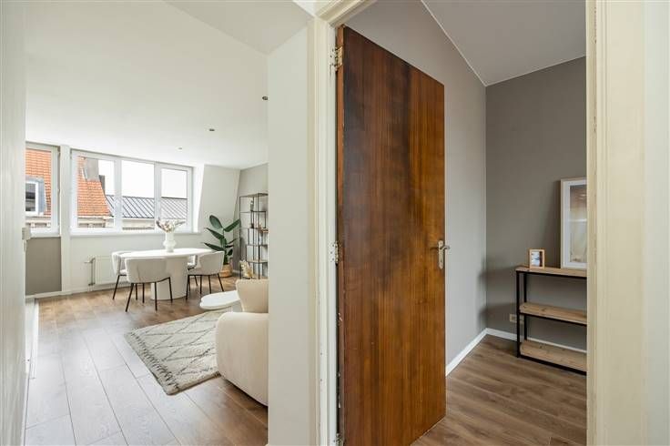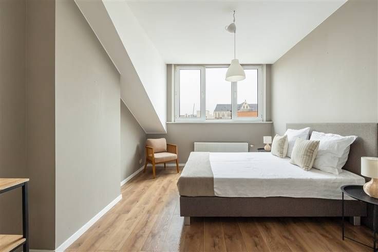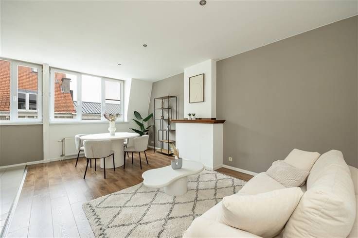 Midden in het historisch centrum , vind je op de derde en bovenste verdieping van een kleinschalig gebouw dit instapklare appartement. Je komt er binnen in de inkomhal, waar je plaats hebt om je jassen weg te hangen. De mooie, donkere laminaatparket die je hier ziet, loopt door over zowat het hele appartement. Van hieruit stap je gezellige, lichte leefruimte met open keuken in, met voldoende plaats voor een ruime zithoek en een eettafel aan de vele ramen vooraan. De keuken is volledig geïnstalleerd en heeft een tegelvloer, inox spatwand, keramisch vuur, dampkap, spoelbak, koelkast en praktische keukenkasten. De slaapkamer bevindt zich aan de andere kant van het appartement en is met z’n 18 m² ruim genoeg voor een dubbel bed, een kleerkast én een bureauhoek. Je kijkt hier bovendien uit op de Antwerpse daken, inclusief zicht op de Carolus Borromeuskerk, de Boerentoren én de kathedraal. De betegelde badkamer is compact, maar gerieflijk, met een douche met gordijn, een lavabo met een spiegel en verlichting en een toilet. De witte metrotegeltjes tot op borsthoogte zijn een toffe extra touch. Centraler dan dit wordt het niet: vlakbij de Ossenmarkt, de campus van de UA, de Meir, en allerlei openbaar vervoer. Ideaal dus voor een student die z’n eigen plek wil vlakbij de campus, of voor een stadsmus pur sang. Meer info: https://www.immovasta.be/panden/gegevens/13915/