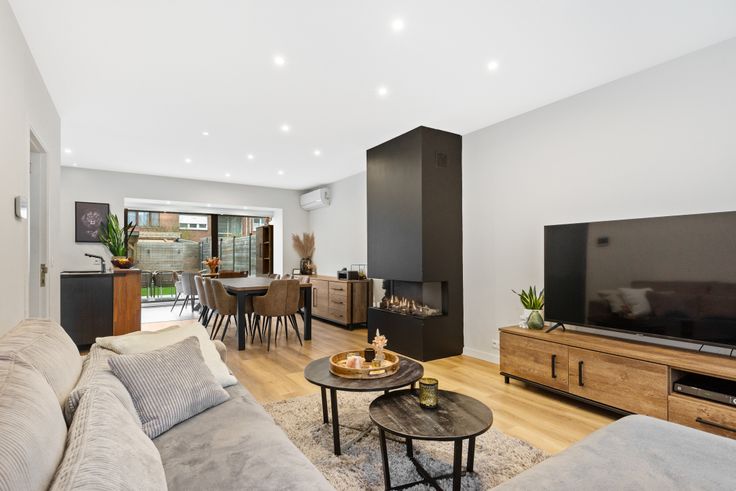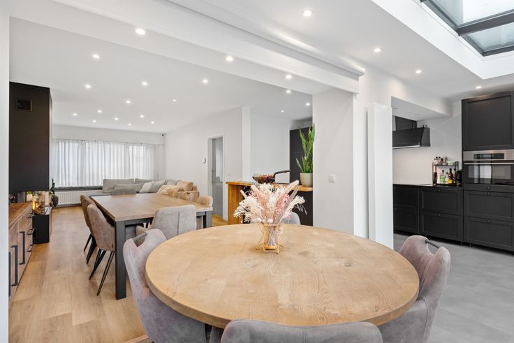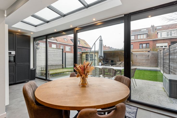 U betreedt de woning via de inkomhal die enerzijds toegang biedt tot de ruimte vrijberoep omgevormd tot beautysalon (biedt mogelijkheden voor zelfstandige activiteiten) en anderzijds de ruime, lichtrijke leefruimte met gashaard en de volledig geïnstalleerde open keuken met kwalitatieve toestellen. Op de eerste verdieping treffen we het slaapgedeelte met twee ruime masterbedrooms en een prachtige badkamer voorzien van alle comfort en een tweede badkamer met douche. De bovenste verdieping voorziet twee ruime gastenkamers. Tot slot beschikt de woning over een prachtig aangelegde tuin met zonnig terras en overdekt terras. De woning werd in 2018 grondig gerenoveerd en is voorzien van alle comfort. De woning biedt tal van mogelijkheden voor zelfstandige activiteiten.