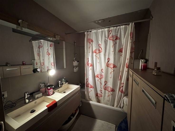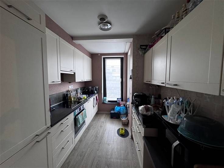 In een rustige wijk van Gembloux, prachtig appartement volledig gerenoveerd. Gelegen op de 2e verdieping van een gebouw met lift. Het bestaat uit een hal die leidt naar een woon/eetkamer van 30m² die uitkomt op een terras op het zuiden. Een super ingerichte keuken (oven, kookplaat, afzuigkap, koelkast, vaatwasser, gootsteen) van 9m², een badkamer met wasruimte van 7m², een apart toilet en 2 slaapkamers van 10m² en 14m² met kledingkasten. Het heeft een kelder en een eigen parkeerplaats. De rolluiken en verlichtingsarmaturen zijn gemonteerd. Eigen meter voor elektriciteit en warm water. 130 euro gemeenschappelijke kosten (gemeenschappelijk gas-koud water) Beschikbaar op 1 april. Een must see!