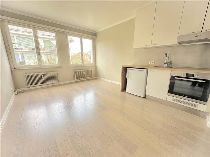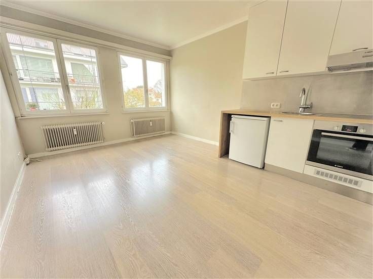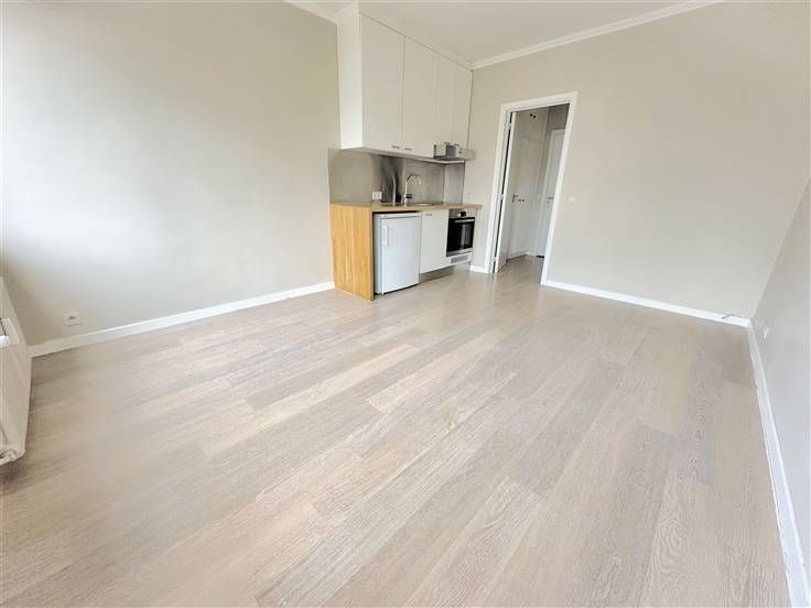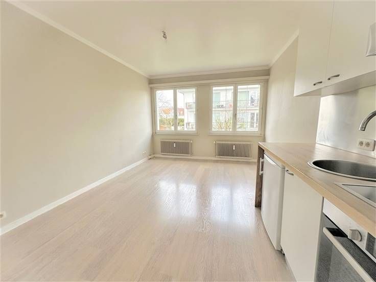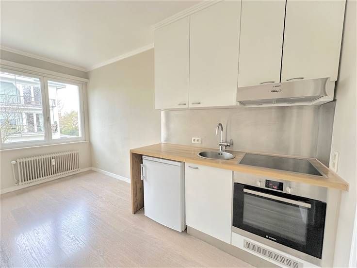 Dans un bel immeuble de type "villa", lumineux studio peu énergivore (PEB D-) avec emplacement de parking en sous-sol et cave.