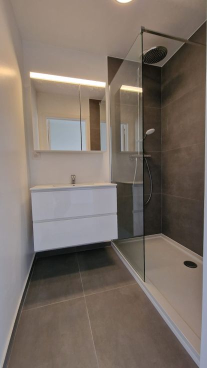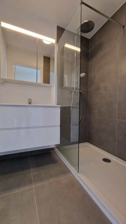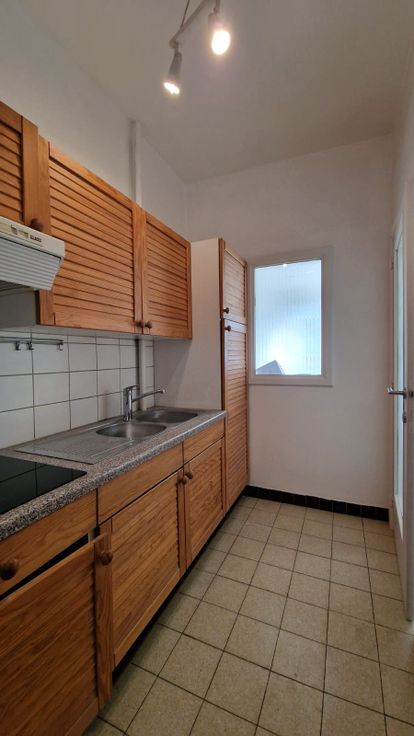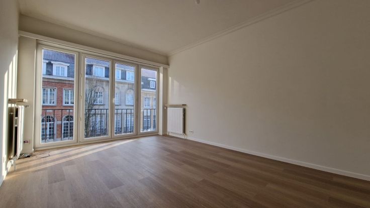 Quartier Pétillon, à deux pas de toutes facilités socio-économiques (commerces, grandes surfaces, écoles, tram Pétillon, métro Pétillon, arrêts de bus,...). Agréable appartement venant d'être complètement rénové, et situé au 2ème étage SANS ASCENSEUR d'un petit immeuble de 3 étages. Hall d'entrée, séjour très lumineux sur parquet mélaminé avec grande baie vitrée, cuisine semi-équipée (meubles, évier, taque vitrocéramique, hotte), 1 chambre sur parquet mélaminé et située au calme à l'arrière, salle de douches équipée (lavabo sur meuble, douche italienne), wc séparé et débarras. Une cave en sous-sol, ainsi qu'une buanderie commune avec lave-linge.