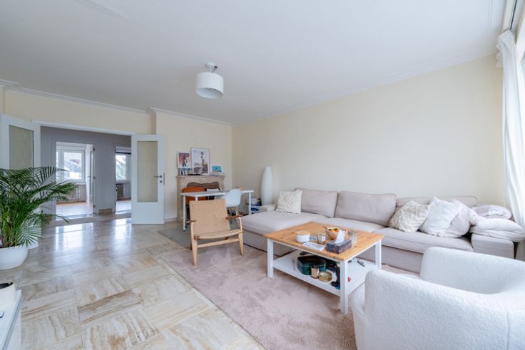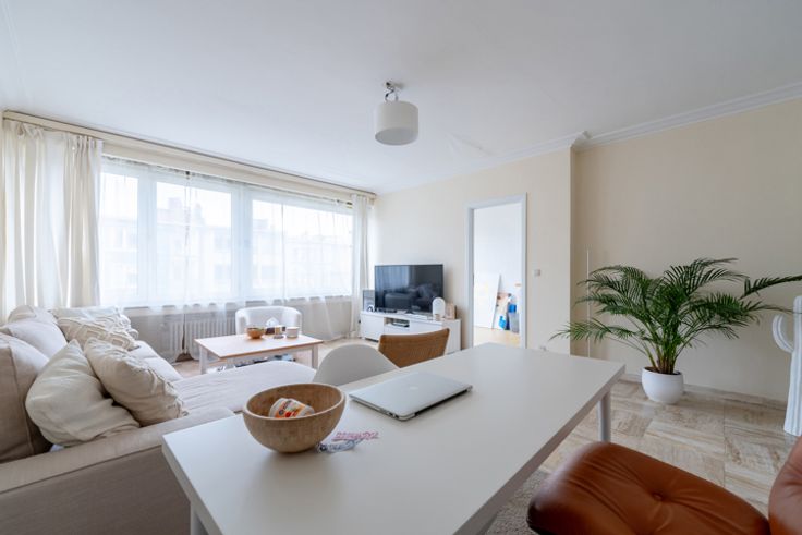 MYIMMO Altitude vous propose ce magnifique appartement de +/- 95 m² au 4 ème étage avec ascenseur à 2 pas du parc Duden. Il se compose : d'un spacieux hall d'entrée avec vestiaire de +/- 12 m², d'un beau et lumineux séjour de +/- 28 m², d'une grande cuisine super équipée de +/- 15 m² (possibilité d'ouverture de la cuisine sur le séjour), de 2 chambres à l'arrière de +/- 14 m² et +/- 10 m² dont une avec accès à la terrasse de +/- 3,5 m² exposée Nord/Est, d'une agréable salle de bains avec rangements et emplacement machine à laver de +/- 5 m², d'une toilette séparée + 1 cave. Chaudière collective au gaz de 2021. Châssis double vitrage PVC. Fond de roulement : 2€40€/mois (provision de chauffage, eau, communs). Montant du fond de réserve : 26.676€. A proximité immédiate des transports et commerces. D'autres biens sur www.myimmo.be