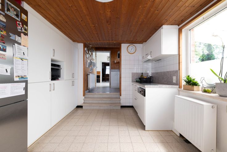 Gelijkvloers: Inkomhal, leefruimte, lichtrijke eetkamer, keuken met ontbijthoek, badkamer en berging.