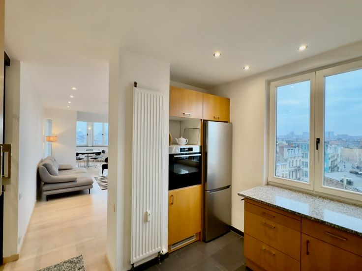 Gelegen binnen het Unesco-perimeter, bevindt dit prachtig gerenoveerde appartement van 90 m² zich op de bovenste (6e) verdieping van een Art Deco-gebouw met een lift. Met een adembenemend open uitzicht over Brussel, veel natuurlijk licht en een rustige sfeer, biedt het een comfortabele en stijlvolle woonomgeving in het historische centrum van de stad.