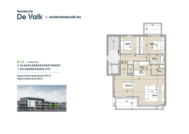 Welkom bij Residentie De Valk, dé enige residentie waar heerlijk wonen in centrum Deerlijk een werkelijkheid wordt. 20 ruime appartementen (1, 2 of 3 slaapkamers) met luxueuze afwerking op een echte toplocatie, net naast kledingwinkel Fragine. Je komt thuis in een architecturale parel met duurzame materialen. Residentie De Valk. Hier wil je wonen. Hier wil je leven. Hier word je gelukkig. Residentie De Valk voldoet aan de tijdelijke 6% btw-regel. Wie nu koopt, bespaart 15% btw op de constructiekost, een heel uitzonderlijke korting die je niet mag mislopen!  Dit appartement is verkocht. Nu is dus het moment om zelf het gemak, comfort en rust van een ruim en lichtrijke appartement met fantastische inpandige terrassen of tuintjes te ontdekken in centrum Deerlijk, waarbij alle winkels, horecazaken, apotheek, scholen, bankkantoren op wandelafstand zijn. Dankzij de nabijgelegen verkeersassen zijn Waregem, Kortrijk en Harelbeke nooit veraf. De Valk biedt je ook altijd parkeerplaats voor de wagen en de fiets. Er zijn 23 afzonderlijke en 2 dubbele gesloten garages voorzien in de ondergrondse verdieping en nog eens 6 aan de achterzijde van het project, ook met afzonderlijke bergruimte. Maak een coronaveilige afspraak en bezoek het volledig ingerichte modelappartement. Je zal verstelt staan van de rust en de schitterende locatie! Wil je meer weten over het zalige leven bij Residentie De Valk? Benieuwd welk appartement het beste aansluit bij jouw noden... Renovatieplicht: onbekend