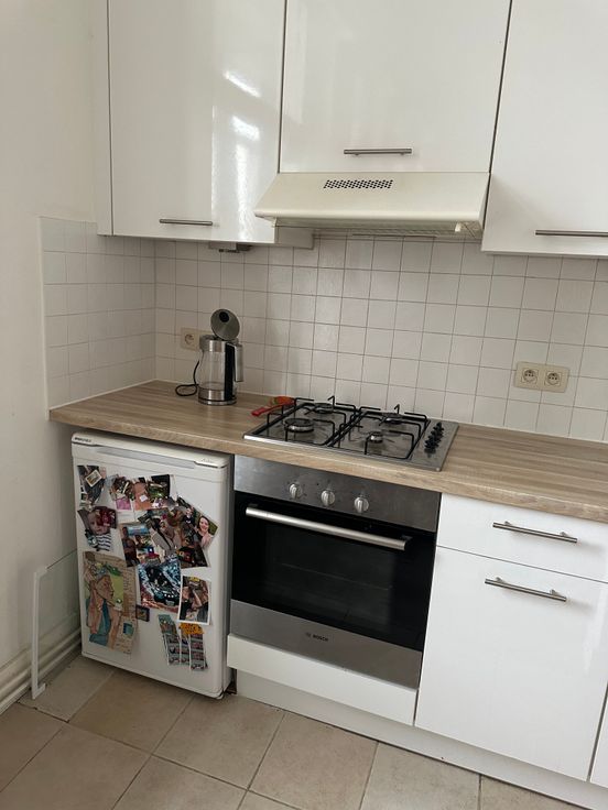 App op 3e Verd. (zonder lift). Inkomhal, ruime lichte woonkamer met open keuken, voorzien van koelkast met diepvriesvak. Eén ruime slaapkamer en badkamer met wastafelmeubel, douche en bad. Aansluiting voor een wasmachine mogelijk. Het appartement is overal voorzien van verlichting en gordijnen.