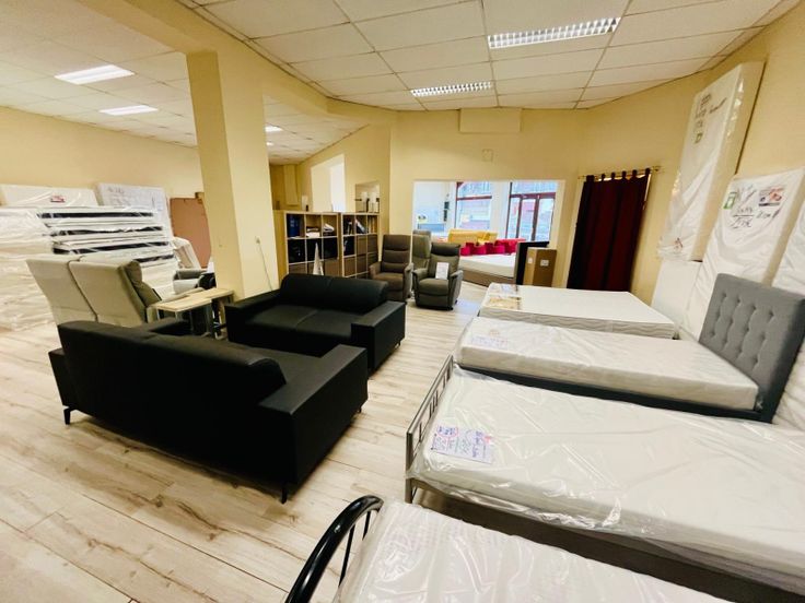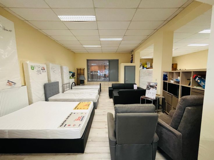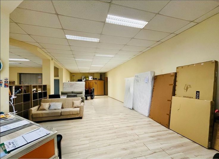 REZ: showroom, pièce de stockage, bureau et WC séparé.