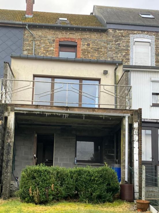 Maison mitoyenne, façade en ardoises naturelles avec jardin, se composant : - au sous-sol : deux caves dont une avec accès au jardin et une salle de bain avec WC ; - au rez-de-chaussée : sas d'entrée, cuisine, salon, salle à manger donnant sur une terrasse ; - à l'étage : une chambre à l'arrière et deux petites chambres reliées par une cloison à l'avant ; - dans les combles : une petite chambre et un grenier. Visite sur rendez-vous avec Madame Dominique VAN DEN HOVE au 082/77.18.77 - tapez 2, du lundi au samedi entre 9h et 19h.