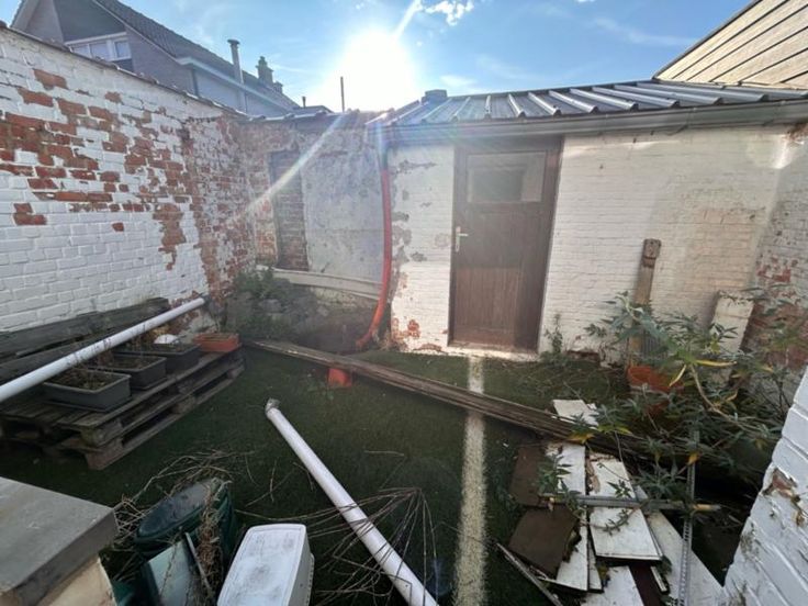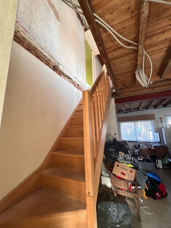 Dit pand wordt op internet verkocht van 13/03/2025 tot 21/03/2025. Deze verder te renoveren woning is opgebouwd als volgt: Gelijkvloers: Living, keuken, trap, badkamer, koer/tuin, berghok Eerste verdieping: slaapkamer Tweede verdieping: mezzanine G score: B P score: B