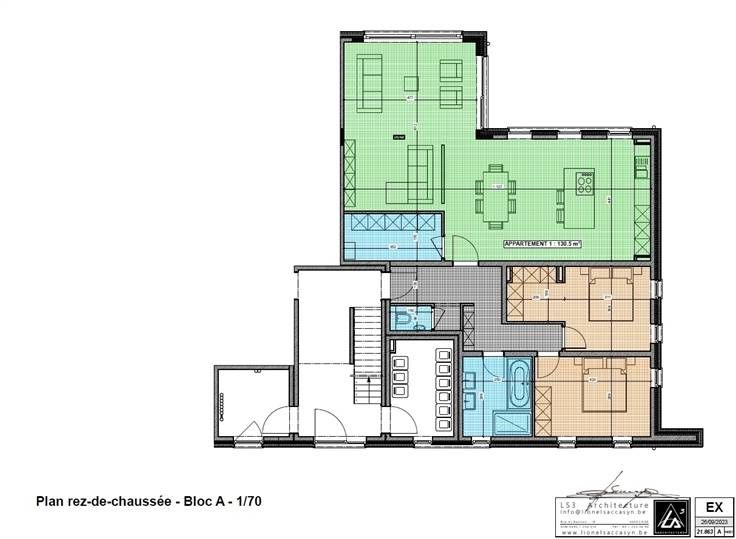 Sorry er is geen nederlandse vertaling beschikbaar. Cet appartement disposera d’un beau living et d’une cuisine ouverte équipée (valeur 17.000€), d’une buanderie, d’une belle salle de bain (douche et baignoire), d’une toilette séparée, de 2 chambres à coucher, d’une terrasse ou d’un jardin selon la localisation, de 2 emplacements parkings privatifs et d’un abri de jardin en rez de chaussée. Chaque bâtiment possède son hall d’entrée privatif avec ascenseur, une barrière viendra privatiser l’accès au domaine. Les différents unités seront toutes selon les normes PEB A en cours, une citerne d’eau de pluie de 15.000L par bâtiment est prévue, le domaine garantira à ses occupants une belle qualité d’environnement grâce à son emplacement, ses vues imprenables, de par sa situation centrale et l’aménagement de ses espaces extérieurs.Caractéristiques techniques: chauffage sol, chaudière individuelle au gaz, VMC simple flux, châssis PVC double flux, excellente performance énergétique PEB A! Une construction de qualité avec un haut niveau d’insonorisation, d’isolation et de finition dans le soucis du détail. Prix: 435.000€ HTVA (21%). www.immo-bertrand.be