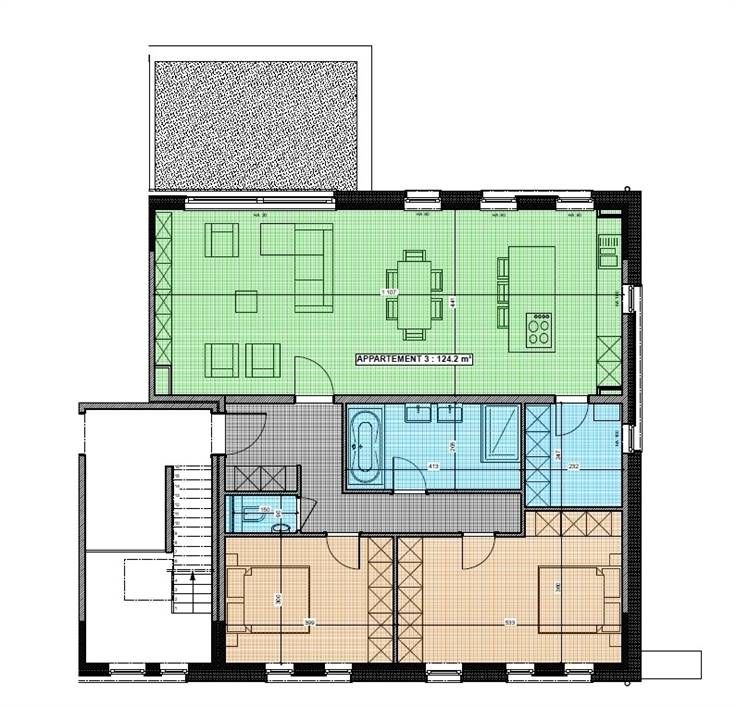 Sorry er is geen nederlandse vertaling beschikbaar. Cet appartement disposera d’un beau living et d’une cuisine ouverte équipée (valeur 17.000€), d’une buanderie, d’une belle salle de bain (douche et baignoire), d’une toilette séparée, de 2 chambres à coucher, d'un ascenseur ultra moderne, d’une terrasse ou d’un jardin selon la localisation, de 2 emplacements parkings privatifs et d’un abri de jardin en rez de chaussée. Chaque bâtiment possède son hall d’entrée privatif avec ascenseur, une barrière viendra privatiser l’accès au domaine. Les différents unités seront toutes selon les normes PEB A en cours, une citerne d’eau de pluie de 15.000L par bâtiment est prévue, le domaine garantira à ses occupants une belle qualité d’environnement grâce à son emplacement, ses vues imprenables, de par sa situation centrale et l’aménagement de ses espaces extérieurs.Caractéristiques techniques: chauffage sol, chaudière individuelle au gaz, VMC simple flux, châssis PVC double vitrage, excellente performance énergétique PEB A!, ascenseur. Une construction de qualité avec un haut niveau d’insonorisation, d’isolation et de finition dans le soucis du détail. Prix: 429.500€ HTVA (21%). www.immo-bertrand.be