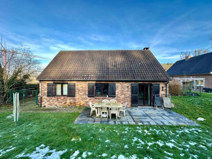 Située dans la TRES PRISEE commune de THEUX, ce bien se situe à proximité immédiate de toutes les commodités (bus, supermarché, etc.). Cette CHARMANTE maison 4 façades offre un cadre de vie AGREABLE et FONCTIONNEL. La maison est composée comme suit: hall d'entrée, WC, un séjour lumineux, équipé d'une cassette à bois, avec une cuisine équipée (double évier, taque vitro, four, lave-vaisselle, frigo), ouverte sur les pièces de vie. Du séjour, vous aurez un accès direct sur la superbe terrasse et au jardin orienté S-O. Le rez-de-chaussée dispose également d'une chambre, une salle de bains (bain/douche, évier), d'une buanderie. NIV +1: hall de nuit, 2 chambres à coucher, dressing, espace grenier. La propriété dispose d'une position en retrait vi oute, avec une allée pouvant accueillir 1 à 2 véhicules en stationnement. Il y a également un carport devant l'habitation pouvant accueillir 1 véhicule. Techniques: châssis DV PVC 2006, volets, chauffage électrique par accumulateurs, RC = 944€, superficie de la parcelle= 1056m², surface plancher chauffé (selon PEB): 114m², construction de 1981, électricité non conforme, PEB G= 646kWh/m².an - 73603 kWh/an (rapport n°20250116021136). Intéressé(e) ? Contactez l'étude NOTALIS (Guyot&Cremer) au 087/77.10.72 !