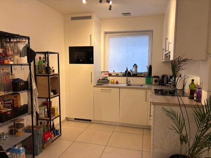 Modern appartement met 2 slaapkamers te Aarschot vlakbij station en E314. Dit appartement heeft een ruime leefruimte met aansluitend terras, veel lichtinval en een open volledig geïnstalleerde keuken met aparte berging. Twee ruime slaapkamers met elk een aansluitend terras, badkamer met bad/douche en meubel en een apart toilet. Tevens een tweede berging in de ondergrondse garage en een autostaanplaats zijn in de prijs begrepen. Lift aanwezig. Gemeenschappelijke kost: 35€/maand. Gelegen op 2 min van oprit E314, het station van Aarschot en busverbinding op 500m. Mogelijkheid tot uitoefenen van vrij beroep. Beschikbaar vanaf 1/5/2025. Voor bezichtigingen 0495 252 251 of www.t-vastgoed.be.
