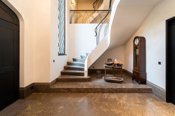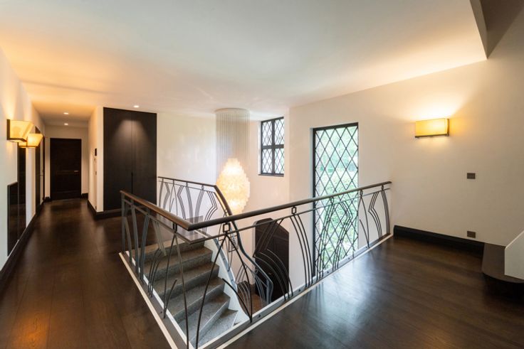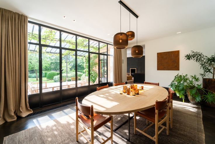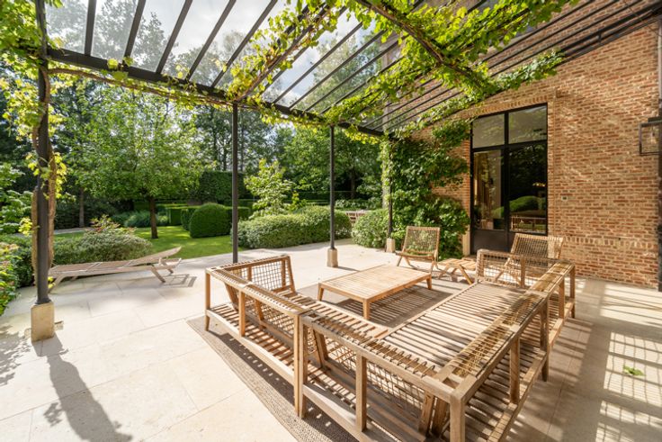 In de meest gegeerde buurt van Brasschaat, Vriesdonk, staat deze riante Costermans villa op een perceel van ca. 1.925m², met een prachtige volwassen tuin en een verwarmd zwembad. Het huis combineert moderne luxe en comfort met een klassieke bouwstijl. Bij binnenkomst betreedt u een royale inkomhal met marmeren tegels, een indrukwekkende traphal met een smeedijzeren balustrade, en een lift die toegang biedt tot alle verdiepingen. De eetkamer heeft een donker gebeitste Hongaarse punt parketvloer en smeedijzeren deuren naar een overdekt terras. De woonkamer is voorzien van een grote open haard en grote raampartijen. Aan de voorzijde van de woning nog een afsluitbaar kantoor met aparte ingang. De leefkeuken heeft een ontbijthoek en open haard, een aparte keukenberging. Naastliggend sauna en doucheruimte voor het zwembad. Ca. 3,1m plafonds. Op de 1e verdieping vinden we een ruime overloop terug met eiken planken. De masterbedroom heeft een erker, een prachtige dressing en een luxueuze badkamer in Emperador marmer. Daarnaast zijn er 3 ruime slaapkamers met ingemaakte kasten en 2 badkamers, een apart toilet en een wasplaats. Ca. 2,8m plafonds. De 2e verdieping biedt een extra leefruimte met home theater, een biljartkamer met bar, fitnessruimte en technische ruimtes. Belangrijke kenmerken: - Inpandig 2 autostaanplaatsen, - Maatwerk Obumex, - Domotica, - Sonos geluidssysteem, - Vloerverwarming, - Centraal stofzuigsysteem, - Alarmsysteem. Contacteer LISTED: + 32 3 283 51 51.