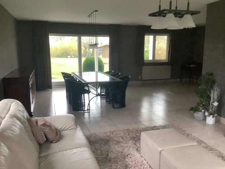 Ruime open bebouwing in een zeer landelijke en rustige omgeving. Grote woon-en eetkamer met veel licht en zicht op tuin. Grote, afgesloten, keuken, voorzien van vaatwasser, ijskast, microgolf, oven en gasvuur met aparte eettafel en eveneens zicht op de tuin. Verder is er op het gelijkvloers een toilet en een wasplaats met ingemaakte kasten en een dubbele garage. Via de inkomdeur kom je in een open, vide, inkomhal met mooie trap. Op de eerste verdieping bevinden zich 4 slaapkamers, een toilet en een badkamer met ligbad en aparte douche.