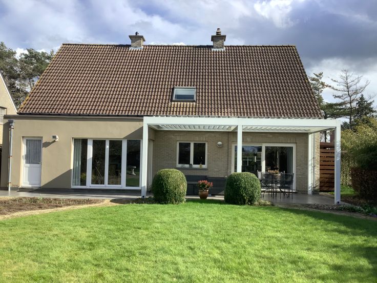 Er is een ruim terras achter de woonkamer met een openklapbare terrasoverkapping, voorzien van verlichting en zonnescreens.