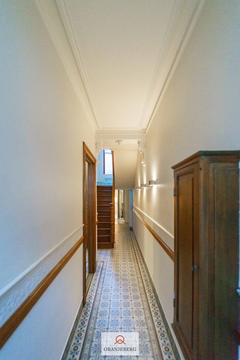 Op wandelafstand van het Sint-Pietersstation en het centrum van Gent, vinden we deze charmante burgerwoning me dubbele garage/magazijn (65 m²) verplicht bij te huren voor € 250/maand, voorzien van elektrische poort. Ideaal voor de doe-het-zelver of zelfstandig vakman. Verdeeld over de vijf verdiepingen: een afgewerkte kelder met voldoende opslagruimte; gelijkvloers met living en eetkamer gescheiden door brede houten authentieke deuren die overgaan naar een lichtrijk binnenkoertje, een keuken, afzonderlijk toilet en een handige berging met mogelijkheid tot aansluiting voor wasmachine. Op de 1ste verdieping bevindt zich een lichtrijke slaapkamer aan de straatkant, een badkamer met douche/bad en dubbele wastafel en tweede toilet en een terras. Op de tweede verdieping: 3 slaapkamers. De zolder is ingericht als slaapkamer. Authentieke elementen, hoge plafonds, charmante tegels in inkomhal, schrijnwerk en dubbele beglazing. CV op gas - EPC 528. Beschikbaar vanaf 1 april 2025.